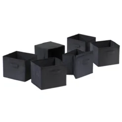 7pc 42.99″ Verona Set Storage Shelf With Folding Fabric Baskets Walnut – Winsome