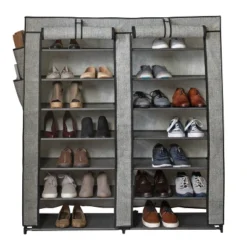 Tangkula 7-Tier Double Rows Shoe Rack Vertical Wooden Shoe Storage Organizer Rustic Brown/White