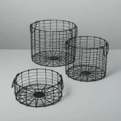 Set Of 2 Brass Metal & Leather Baskets – Foreside Home & Garden
