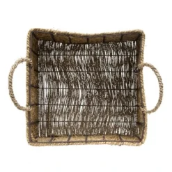 Black Trim Woven Seagrass & Rope Tray By Foreside Home & Garden