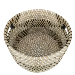 Northlight Set Of 3 Black And Beige Woven Table And Floor Cylindrical Seagrass Baskets