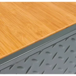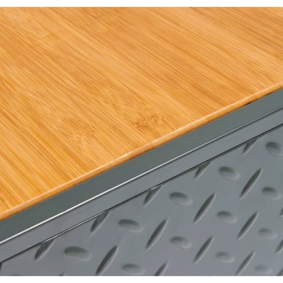 - Sturdy storage furniture is made of metal and includes a smooth eco-friendly bamboo top