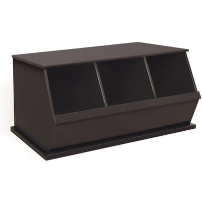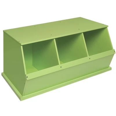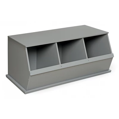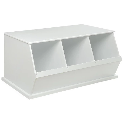 Badger Basket’s Three Bin Stackable Storage Cubby/Bin is a sturdy, modular storage solution for keeping all sorts of items tidy. Features three generously sized open bins that can be stacked with other bins to expand your storage capacity (each bin unit sold separately). Can be used for storing books/magazines/newspapers, toys, winter accessories, sporting goods, videos/DVDs/CDs, craft supplies, linens, and more! Three-bin design helps with sorting and separating items. Wide mouth bin openings make it easy to load and unload. When you need to clean up quickly, it is a breeze to stuff everything inside! Great for kids when learning to sort, organize, and clean-up. Top surface offers an additional place to stack books, drop your purse, or arrange picture frames and keepsakes. For more storage, stack additional units (sold separately) next to or on top. Solid panel construction ensures that your treasured items stay inside the unit – nothing falls out the back or sides. Smooth surfaces are easy to clean and maintain. Badger Basket’s Three-Bin units mix and match with Badger’s Two-Bin units and Badger’s Shelf Storage units. Made with engineered wood. Painted finish. Metal hardware. Overall unit measures approximately 37.25 inches L x 19.25 inches W x 17.125 inches H. Each bin measures 11 inches L x 17.5 inches W x 15.6 inches H. Height from floor to top edge of front panel is 9 inches. Assembled weight: 37 pounds. All measurements approximate. Wipe clean with a damp cloth and mild detergent as needed and dry thoroughly. Adult assembly required. Illustrated assembly instructions included. Non-toxic painted finish. Product complies with all currently applicable safety standards and CARB ATCM standards. Some soft plastic/rubber toys (such as balls) can react with and cause damage to the finish when left in prolonged contact. Be mindful of what is stored in the unit and regularly check toys and the unit to prevent damage. When stacking multiple bins, you must always use the included safety brackets to secure the units together. If stacking three or more bins high, we recommend using wall anchor/furniture safety straps (not included) to anchor the units to the wall for safety and stability. Wall anchor straps are not included due to the many types of walls found in homes. Please consult with your local hardware retailer about your particular walls, home, and necessary hardware. Product may vary slightly from shown and described. Props/accessories shown are for illustration purposes only and are not included with the product. Actual color/finish may vary slightly from screen display. This item ships in its original carton that may include a product photo.