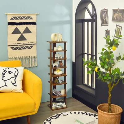 The rustic brown will fill your room with a mid-century glamour. And since it is made of odor-free P2 MDF boards with water-resistant coating, this shoe organizer is stable and durable to tackle with daily uses. It is also a suitable bathroom rack, a plant holder, or a normal side storage rack for most of your rooms. Fully utilizing the vertical rooms, this 7-tier shoe organizer has large capacity and still manages to fit into the corners and nooks of the interior.