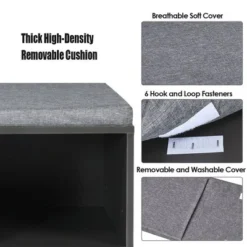 - Stable and Rugged Structure: This shoe storage bench is sturdy while featuring max 440lbs strong load-bearing. Additionally, the seat cushion is fixed on the bench by 6 hook and loop fasteners to ensure that it is not easy to slide.