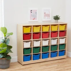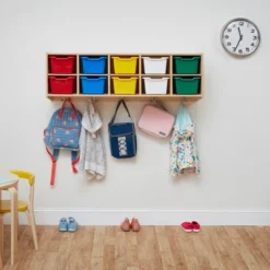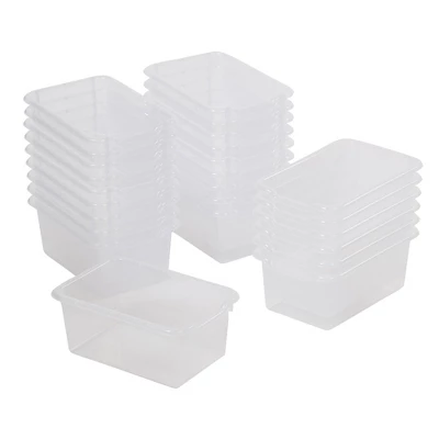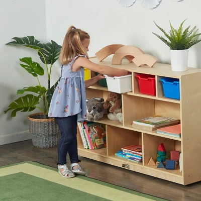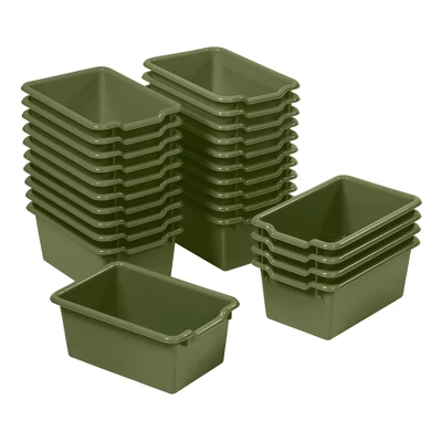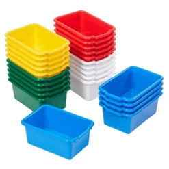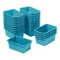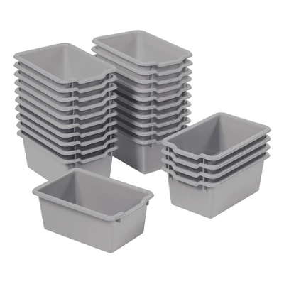 Keep your classroom and home organized, tidy, and efficient with ECR4Kids Scoop Front Storage Bins. The sturdy plastic bins are designed for everyday use to keep small items contained off the floor. Teachers, educators, and parents can utilize bins to store books, toys, manipulatives, and games. The open bin design displays and provides easy access to contents. Organize stories and label bins by reading level, theme, or holiday, encouraging children to independently select their favorite story and clean up during playtime. Personalize trays in classroom cubbies for children to store art projects, individual items, homework, and more. The Scoop Front Bins provide a flexible storage solution with endless possibilities for use from the garage to the kitchen pantry, or nursery. Durable plastic bins feature rounded edges, an easy-to-grasp scoop front handle, and a curved interior to simply remove contents. Lightweight bins are easy to pick up and carry, transporting from a storage cabinet to a play space. Bins nest to save space, and built-in stack supports prevent locking when empty. Use as standalone storage or pair with ECR4Kids storage lockers, cubby units, or tray cabinets; sold separately.