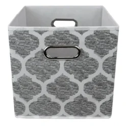 A unique medley of ornate patterns, the Arabesque storage cube is perfect for providing a designated zone for remotes, media, and reading material. It features open handles along each side allowing you to move the bin wherever you desire. It folds down to a flat square so that you can easily slide it underneath the bed or tuck away in a drawer when not in a drawer when not in use. Spot clean. The unit is easy to clean. Simply wipe clean with a dry cloth to remove debris. Keep your home and office neat and tidy with this versatile bin. Perfect for the nurses, bedroom, living room and or organizing off supplies in the workplace. With its sturdy sides it will always keep its shape. Item dimensions may differ slightly from actual product due to manual measurement. Color and finish may differ slightly from image due to differences in monitor displays.