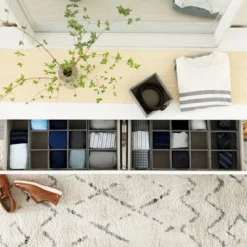 - Stylishly streamline any closet with this thoughtfully crafted storage solution