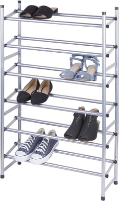 - ORGANIZE: No more tripping over shoes. This shoe rack can be used almost anywhere in the house where piles of shoes accumulate. Because it is expandable and nice looking, one can go inside the front door where most shoes start piling up. Get shoes off the floor and organized. Everything in its place. Put over a register, the shoe rack can aid in drying wet shoes