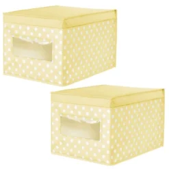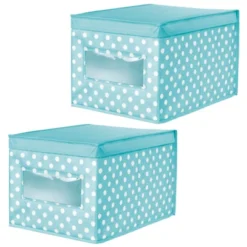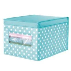 These fun Fabric Storage Boxes by mDesign are perfect for keeping your nursery closets organized and clutter-free. They offer roomy space for storing receiving blankets, stuffed animals, books, out of season or next size up clothing, hats, swimming gear, and other necessities. The clear window lets you see the contents without having to open the attached the lid. Its polka dot pattern offers a fun and whimsical look to any bedroom closet, laundry area or other storage space in your home.