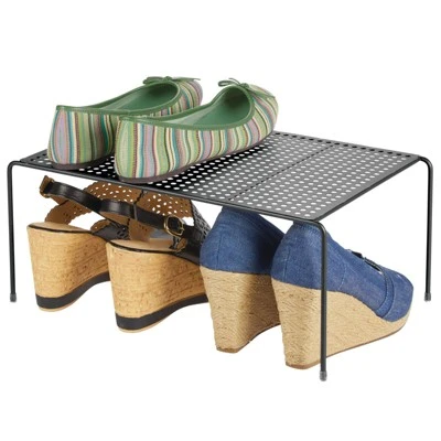 The mDesign Closet Organizer Storage Shelf makes the most of the unused storage space in your bedroom, linen shelves, hallways closets, vanity counter tops and cupboards. The two-tier design makes it easy to maximize small spaces by providing double the storage. Store everything from clothing, cosmetics, health and beauty items to fashion accessories. The versatile design works with any decor. Mix and match with other mDesign products with the same design and color to create a custom storage solution and a cohesive look for your home.