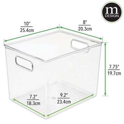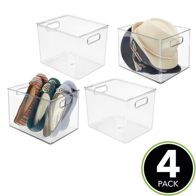 mDesign Closet Bin Organizers make it simple and easy to store and organize everything from clothing, cosmetics, health and beauty items to fashion accessories inside a closet or on a shelf. Built-in handles make it easy to transport items to your desired location, and they also make it easy to pull off a shelf with ease. The versatile design works with any decor. Mix and match with other mDesign containers to create a custom storage solution and a cohesive look for your home. Stash them inside cabinets or closets in the bedroom, bathroom or laundry room, or store them inside cabinets or cupboards for more discreet storage.
