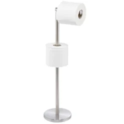 MDesign Toilet Paper Roll Holder Stand/Dispenser – Brushed Stainless – Bronze