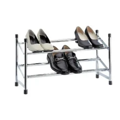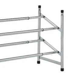 Keep your closet or entryway organized with the Neu Home Expandable Shoe Rack. The attractive 2 tier shoe rack has a chrome finish that will uplift any home or closet. Fitting a minimum of 6 pairs of shoes and expanding to fitting up to 12 pairs. Perfect for holding sneakers, loafers, heels, boots and more.
