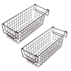 - SET OF 2 BASKETS – This storage basket set comes with 2 wire baskets for closet, bathroom, pantry, and kitchen storage. The bathroom storage bins are small to save space, perfect for little kitchens, apartments, dorm rooms, or RVs.
