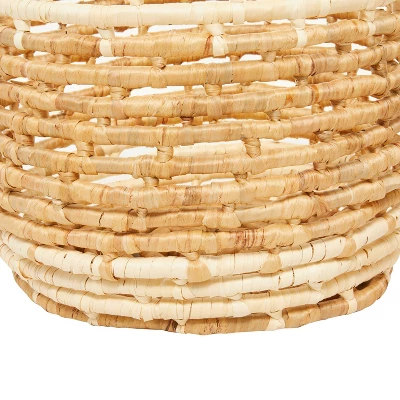 Take a whimsical piece of sweet cottage vibe into your homes as you decorate your living room, laundry area, and bedrooms with these natural storage baskets. Maintain a tidy home with a welcoming look with the help of these chic storage baskets. Keep your space tidy and neat with the help of these storage baskets. This item is shipped in one carton. Due to the handmade nature of this item, no two will be alike, there will be slight differences in shape, size, and color.. Suitable for indoor use. Made in Vietnam. These baskets come as a set of 3. Contemporary style.