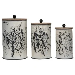 Set Of 3 Cream And Gray Floral Metal Decorative Storage Canisters – Foreside Home & Garden
