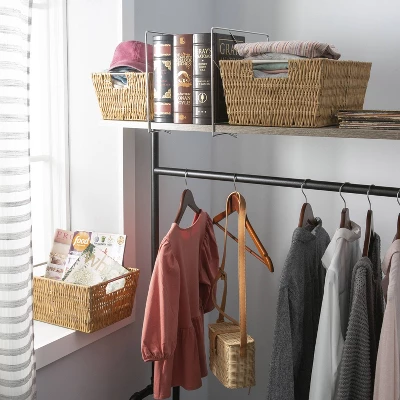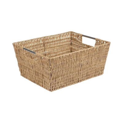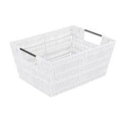Organize and create storage in your home with the Simplify Rattan Tote Basket Collection. Simplify’s Rattan Tote is a PE Basket with an iron frame and 2 sturdy stainless steel carry handles. It is strong and durable prolonging it’s life, and it’s lightweight design makes it easy to lift and carry. Fits any home decor with it’s wide selection of colors. Store your household belongings and organize space with these stylish baskets. stack them together in a corner of your craft area, home office or dorm to keep your essentials close at hand in an organized manner.