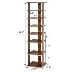 - ใ7-Tier Neat Storageใ This shoe tower provides you with 7 vertical shoe storage shelves. The upper shelves are for slippers, sneaker kinds of shoes, while the lower shelves have more room for high heels and high shoes. And you can detach one board to create widened spaces for high boots.