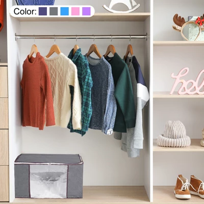 Why Choose Clothes Storage Bags Large Capacity Clothes Storage Bins Foldable Closet Organizers?Made of three-ply composite non-woven fabric, sturdy and durable, odorless, protect your clothes from dust and moisture.A see-through window in the front allows you to quickly see what is stored inside the totes for storage.Lightweight, portable, and foldable storage bags allow them to be easily stored to save space when not in use.A two-way zipper allows it to easily slide along the closure when in use, preventing dust from entering, and keeping your clothes neat and tidy.The reinforced handle with two layers of thick fabric to prevent tearing. The handle seams for added strength for easy portability and transport.A clothing storage bag is suitable for storing your Comforters, blankets, jackets, or other clothes for changing seasons.Specification:Material: Non-Woven FabricsApprox size: 60 cm(L) x 40 cm(W) x 35 cm(H)/ 23.62 inch x 15.75 inch x 13.78 inchApplication: Suitable for storing clothing, blankets, quilt, Comforters, etc.Folding: The clothes storage bag is folding, easy to carry and store when not in use.Package included: 4pcs Storage BagNotice:Please allow 1-3cm deviation due to manual measurement.Actual color may be slightly different from the image due to different monitor and light effect